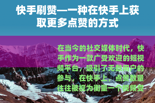 在当今的社交媒体时代,快手作为一款广受欢迎的短视频平台,吸引了无数用户的参与,在快手上,点赞数量往往被视为衡量一个视频受欢迎程度的重要指标之一,而快手刷赞,也逐渐成为了一些用户关注的话题。