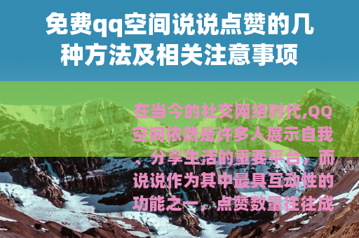 在当今的社交网络时代,QQ空间依然是许多人展示自我、分享生活的重要平台,而说说作为其中最具互动性的功能之一,点赞数量往往成为了大家关注的焦点,很多人都希望自己的说说能获得更多的点赞,这不仅能带来满足感,还能增加自己在社交圈中的人气,我们就来聊一聊免费QQ空间说说点赞的那些事儿。