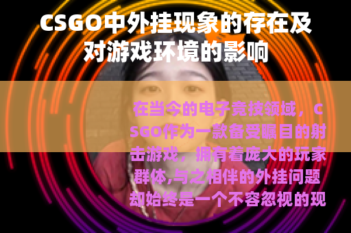 在当今的电子竞技领域,CSGO作为一款备受瞩目的射击游戏,拥有着庞大的玩家群体,与之相伴的外挂问题却始终是一个不容忽视的现象。