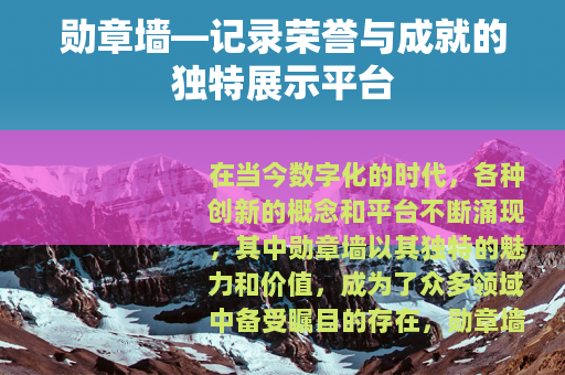 在当今数字化的时代,各种创新的概念和平台不断涌现,其中勋章墙以其独特的魅力和价值,成为了众多领域中备受瞩目的存在,勋章墙,它不仅仅是一面简单的墙,更是一个承载着无数荣誉、成就和回忆的虚拟空间,在不同的场景下发挥着重要的作用,为人们带来了激励、认可和归属感。