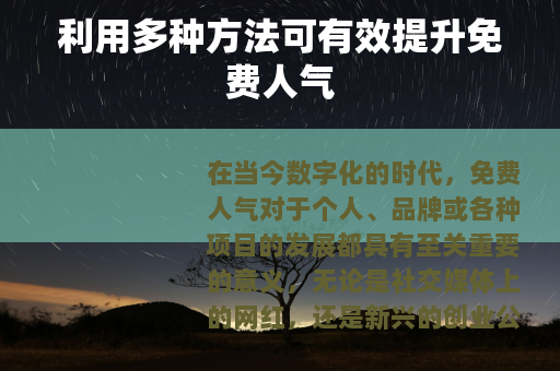 在当今数字化的时代,免费人气对于个人、品牌或各种项目的发展都具有至关重要的意义,无论是社交媒体上的网红,还是新兴的创业公司,亦或是各类线上线下的活动,拥有足够的免费人气都能为其带来更多的机会和可能。