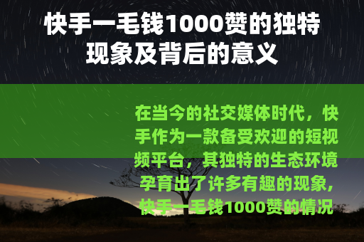 在当今的社交媒体时代,快手作为一款备受欢迎的短视频平台,其独特的生态环境孕育出了许多有趣的现象,快手一毛钱1000赞的情况引起了不少人的关注。