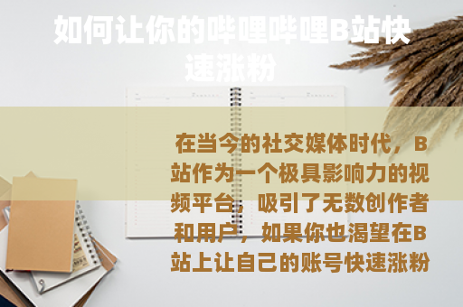 通过以上这些方法的综合运用,相信你在B站上的粉丝数量会逐渐快速增长,让你在这个充满活力的平台上拥有属于自己的一片天地,实现自己的创作梦想。