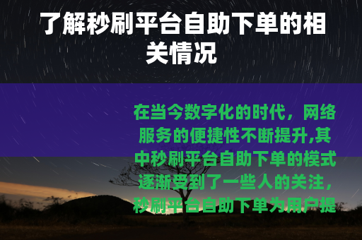 在当今数字化的时代,网络服务的便捷性不断提升,其中秒刷平台自助下单的模式逐渐受到了一些人的关注。