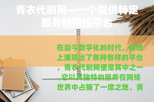 在当今数字化的时代,网络上涌现出了各种各样的平台,青衣代刷网便是其中之一,它以其独特的服务在网络世界中占据了一席之地。