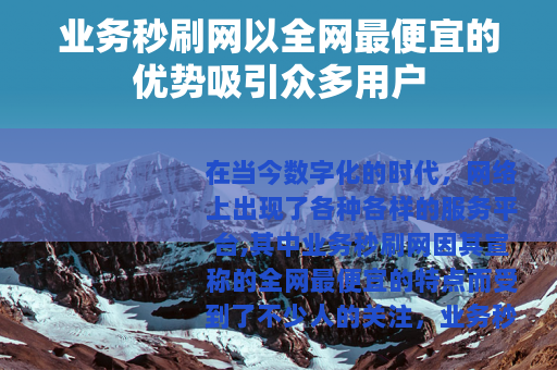 在当今数字化的时代,网络上出现了各种各样的服务平台,其中业务秒刷网因其宣称的全网最便宜的特点而受到了不少人的关注。