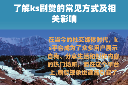 在当今的社交媒体时代,ks平台成为了众多用户展示自我、分享生活和创作内容的热门场所,而在这个平台上,刷赞现象也逐渐引起了人们的关注。
