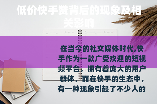 在当今的社交媒体时代,快手作为一款广受欢迎的短视频平台,拥有着庞大的用户群体,而在快手的生态中,有一种现象引起了不少人的关注,那就是低价快手赞。