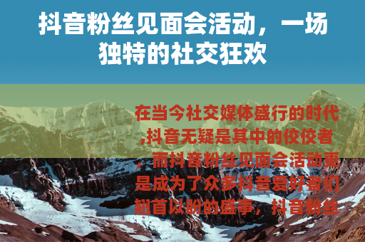 在当今社交媒体盛行的时代,抖音无疑是其中的佼佼者,而抖音粉丝见面会活动更是成为了众多抖音爱好者们翘首以盼的盛事。