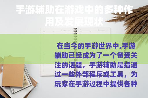 在当今的手游世界中,手游辅助已经成为了一个备受关注的话题,手游辅助是指通过一些外部程序或工具,为玩家在手游过程中提供各种便利和帮助的软件或设备,它在一定程度上改变了玩家的游戏体验,有着多方面的特点和影响。