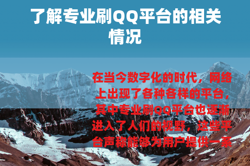 在当今数字化的时代,网络上出现了各种各样的平台,其中专业刷QQ平台也逐渐进入了人们的视野,这些平台声称能够为用户提供一系列与QQ相关的特殊服务,从而吸引了不少人的关注。