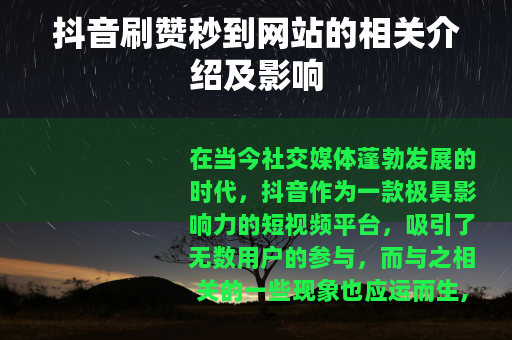 在当今社交媒体蓬勃发展的时代,抖音作为一款极具影响力的短视频平台,吸引了无数用户的参与,而与之相关的一些现象也应运而生,其中就包括抖音刷赞秒到网站。