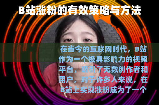 在当今的互联网时代,B站作为一个极具影响力的视频平台,吸引了无数创作者和用户,对于许多人来说,在B站上实现涨粉成为了一个重要的目标,如何在B站有效地涨粉呢? 质量是关键,创作者需要提供有价值、有趣、独特的视频内容,这意味着要深入了解自己的目标受众,知道他们感兴趣的话题和类型,如果你的受众主要是年轻人,那么可以制作与游戏、动漫、科技、生活趣事等相关的视频,通过精心策划和制作,确保视频具有较高的观赏性和吸引力,让观众在观看后能够有所收获,从而增加他们关注你的可能性。