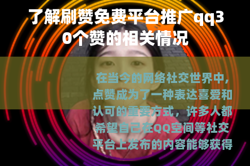在当今的网络社交世界中,点赞成为了一种表达喜爱和认可的重要方式,许多人都希望自己在QQ空间等社交平台上发布的内容能够获得更多的赞,以展示自己的人气和魅力,而刷赞免费平台推广qq30个赞的现象也随之出现。