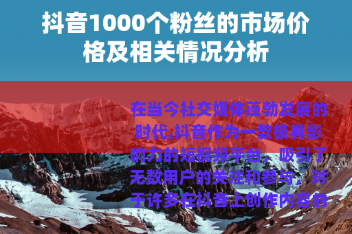 在当今社交媒体蓬勃发展的时代,抖音作为一款极具影响力的短视频平台,吸引了无数用户的关注和参与,对于许多在抖音上创作内容的人来说,粉丝数量是衡量其影响力和成功的一个重要指标,抖音1000个粉丝的价值和获取成本也成为了一个备受关注的话题。