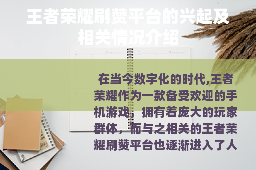 在当今数字化的时代,王者荣耀作为一款备受欢迎的手机游戏,拥有着庞大的玩家群体,而与之相关的王者荣耀刷赞平台也逐渐进入了人们的视野。
