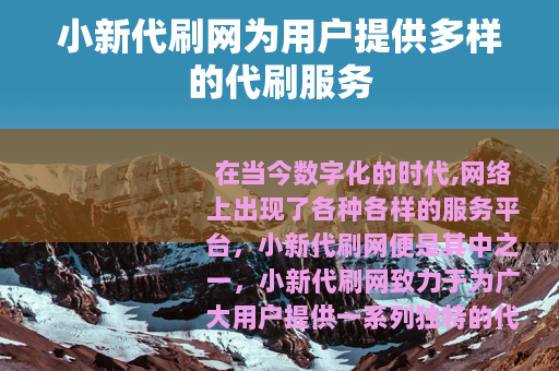 在当今数字化的时代,网络上出现了各种各样的服务平台,小新代刷网便是其中之一,小新代刷网致力于为广大用户提供一系列独特的代刷服务,满足不同用户在网络世界中的各种需求。