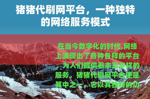 在当今数字化的时代,网络上涌现出了各种各样的平台,为人们提供着丰富多样的服务,猪猪代刷网平台便是其中之一,它以其独特的功能和特点,在网络世界中占据了一席之地。