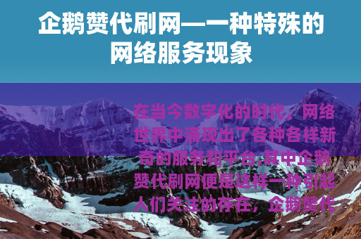 在当今数字化的时代,网络世界中涌现出了各种各样新奇的服务和平台,其中企鹅赞代刷网便是这样一种引起人们关注的存在。