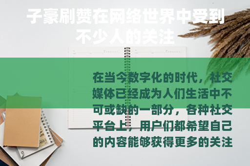 在当今数字化的时代,社交媒体已经成为人们生活中不可或缺的一部分,各种社交平台上,用户们都希望自己的内容能够获得更多的关注和点赞,以展示自己的影响力和受欢迎程度,在这样的背景下,一种名为“子豪刷赞”的现象逐渐兴起。