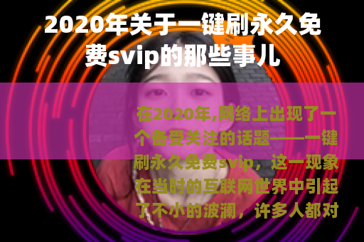在2020年,网络上出现了一个备受关注的话题——一键刷永久免费svip,这一现象在当时的互联网世界中引起了不小的波澜,许多人都对其充满了好奇与期待。