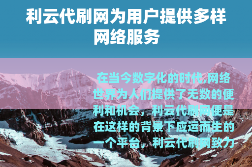 在当今数字化的时代,网络世界为人们提供了无数的便利和机会,利云代刷网便是在这样的背景下应运而生的一个平台,利云代刷网致力于为广大用户提供一系列独特的网络服务,满足不同用户在网络生活中的各种需求。