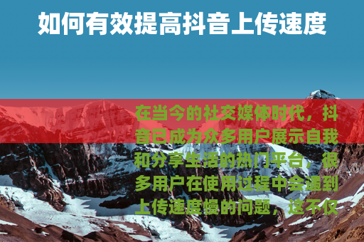 在当今的社交媒体时代,抖音已成为众多用户展示自我和分享生活的热门平台,很多用户在使用过程中会遇到上传速度慢的问题,这不仅影响了创作的热情,也可能导致错过最佳发布时机,如何提高抖音上传速度呢?以下是一些实用的方法。