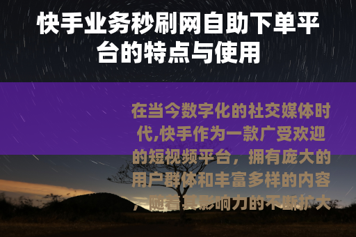 在当今数字化的社交媒体时代,快手作为一款广受欢迎的短视频平台,拥有庞大的用户群体和丰富多样的内容,随着其影响力的不断扩大,与之相关的各种业务需求也应运而生,其中快手业务秒刷网自助下单平台逐渐受到了一些人的关注。
