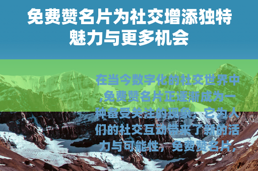 在当今数字化的社交世界中,免费赞名片正逐渐成为一种备受关注的现象,它为人们的社交互动带来了新的活力与可能性。