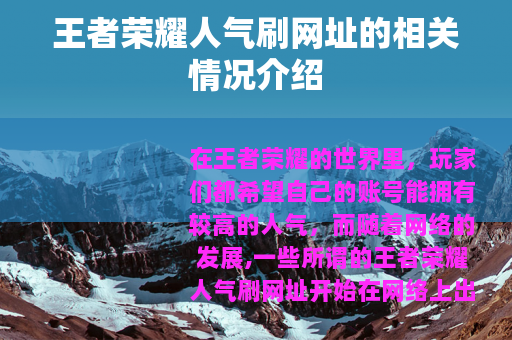在王者荣耀的世界里,玩家们都希望自己的账号能拥有较高的人气,而随着网络的发展,一些所谓的王者荣耀人气刷网址开始在网络上出现。