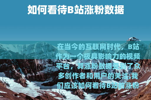在当今的互联网时代,B站作为一个极具影响力的视频平台,其涨粉数据受到了众多创作者和用户的关注,我们应该如何看待B站的涨粉数据呢?