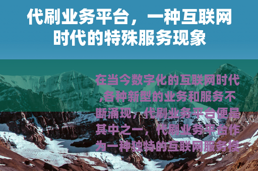 在当今数字化的互联网时代,各种新型的业务和服务不断涌现,代刷业务平台便是其中之一,代刷业务平台作为一种独特的互联网服务模式,在一定程度上满足了部分用户在特定领域的需求。