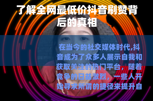 在当今的社交媒体时代,抖音成为了众多人展示自我和获取关注的热门平台,随着竞争的日益激烈,一些人开始寻求所谓的捷径来提升自己的点赞数量,于是全网最低价抖音刷赞的服务便应运而生。