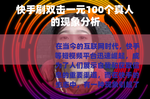 在当今的互联网时代,快手等短视频平台迅速崛起,成为了人们展示自我和获取信息的重要渠道,而在快手的生态中,有一种现象引起了广泛的关注,那就是所谓的“快手刷双击一元100个真人”服务。