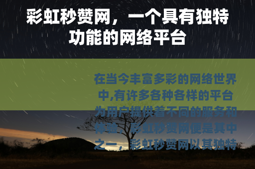 在当今丰富多彩的网络世界中,有许多各种各样的平台为用户提供着不同的服务和体验,彩虹秒赞网便是其中之一。