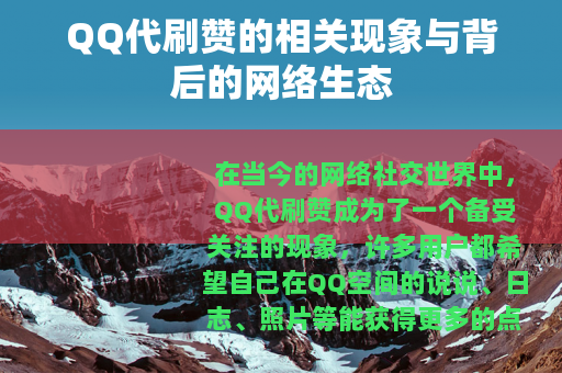 在当今的网络社交世界中,QQ代刷赞成为了一个备受关注的现象,许多用户都希望自己在QQ空间的说说、日志、照片等能获得更多的点赞数,以此来展现自己的人气和受欢迎程度,QQ代刷赞业务便应运而生,满足了这部分用户的需求。