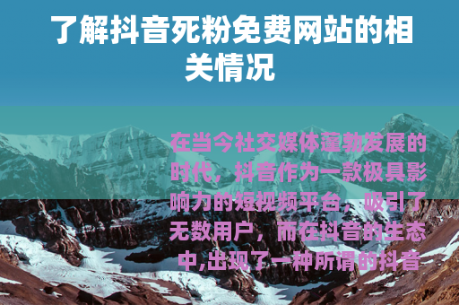 在当今社交媒体蓬勃发展的时代,抖音作为一款极具影响力的短视频平台,吸引了无数用户,而在抖音的生态中,出现了一种所谓的抖音死粉免费网站的现象。