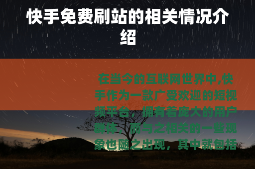 在当今的互联网世界中,快手作为一款广受欢迎的短视频平台,拥有着庞大的用户群体,而与之相关的一些现象也随之出现,其中就包括快手免费刷站。