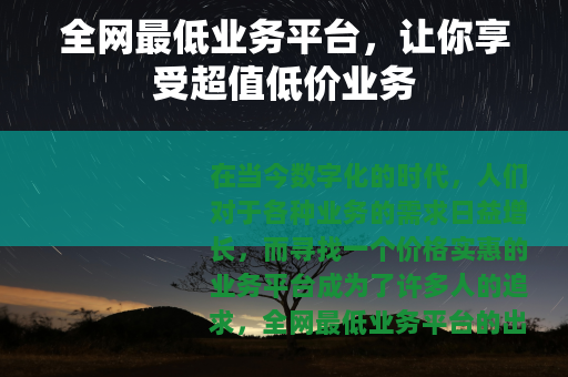 在当今数字化的时代,人们对于各种业务的需求日益增长,而寻找一个价格实惠的业务平台成为了许多人的追求,全网最低业务平台的出现,无疑为广大用户带来了福音。