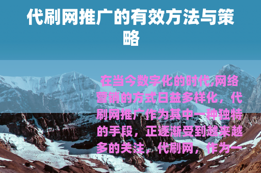 在当今数字化的时代,网络营销的方式日益多样化,代刷网推广作为其中一种独特的手段,正逐渐受到越来越多的关注,代刷网,作为一个为用户提供各种网络服务刷量的平台,其推广有着自身的特点和方法。