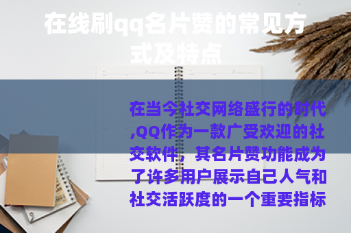 在当今社交网络盛行的时代,QQ作为一款广受欢迎的社交软件,其名片赞功能成为了许多用户展示自己人气和社交活跃度的一个重要指标,而在线刷QQ名片赞也随之兴起,成为了一个备受关注的现象。