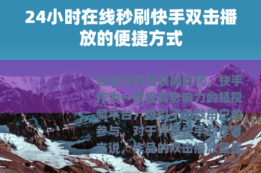 在当今的互联网时代,快手作为一款极具影响力的短视频平台,吸引了无数用户的参与,对于许多快手创作者来说,作品的双击播放量是衡量其受欢迎程度和影响力的重要指标之一,而如今,有一种24小时在线秒刷快手双击播放的服务出现,为创作者们提供了一种快速提升数据的途径。