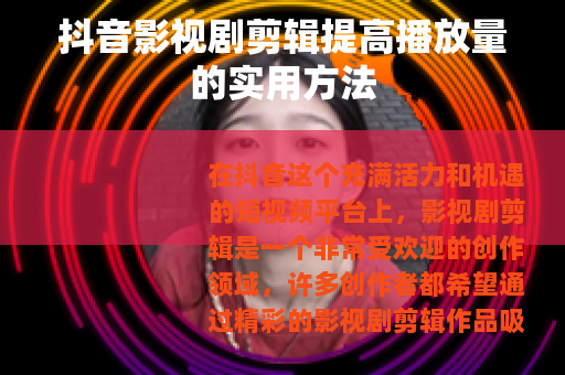 在抖音这个充满活力和机遇的短视频平台上,影视剧剪辑是一个非常受欢迎的创作领域,许多创作者都希望通过精彩的影视剧剪辑作品吸引更多的观众,提高播放量,从而获得更多的关注和收益,抖音的影视剧剪辑究竟该如何提高播放量呢?以下是一些实用的方法。