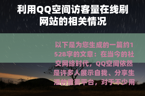 在当今的社交网络时代,QQ空间依然是许多人展示自我、分享生活的重要平台,对于不少用户来说,QQ空间的访客量成为了一种衡量自己受欢迎程度和社交活跃度的重要指标,一些QQ空间访客量在线刷网站应运而生。