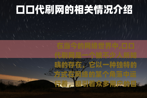 在当今的网络世界中,口口代刷网是一个被不少人所知晓的存在,它以一种独特的方式在网络的某个角落中运行着,吸引着众多用户的目光。