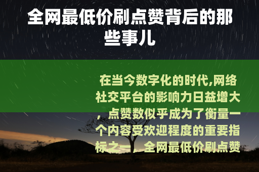 在当今数字化的时代,网络社交平台的影响力日益增大,点赞数似乎成为了衡量一个内容受欢迎程度的重要指标之一,全网最低价刷点赞的服务悄然兴起,吸引了众多人的目光。