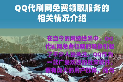 在当今的网络世界中,QQ代刷网免费领取的现象引起了不少人的关注,QQ作为一款广受欢迎的社交软件,拥有庞大的用户群体,而与之相关的各种代刷服务也应运而生,其中免费领取的模式更是吸引了众多用户的目光。