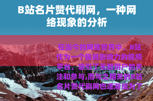在当今的网络世界中,B站作为一个极具影响力的视频平台,吸引了无数用户的关注和参与,而与之相关的B站名片赞代刷网也逐渐成为了一个备受瞩目的话题。