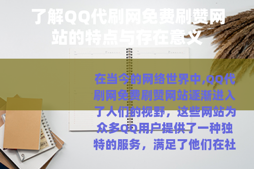 在当今的网络世界中,QQ代刷网免费刷赞网站逐渐进入了人们的视野,这些网站为众多QQ用户提供了一种独特的服务,满足了他们在社交平台上追求高人气和关注度的需求。