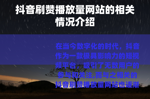 在当今数字化的时代,抖音作为一款极具影响力的短视频平台,吸引了无数用户的参与和关注,而与之相关的抖音刷赞播放量网站也逐渐进入了人们的视野。
